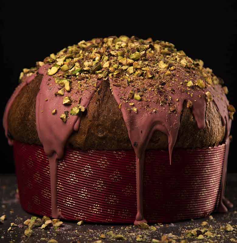 • Panettone Frutti di Bosco, Cioccolato Ruby e Pistacchi:  Novità del natale 2021, nasce dalla nostra volontà di utilizzare un ingrediente fantastico come il cioccolato ruby, dal colore rosa e dal gusto fruttato, con note fresche ed aspre. Quale migliore combinazione di quella con i frutti di bosco in pezzi, e per finire una spolverata di granella di pistacchi quando la cioccolata è ancora calda, così che rimangano incastonati nella copertura rosa.